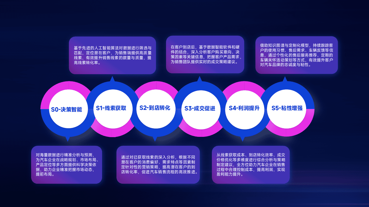 通过拓宽潜在客户来源、、、优化线索分配并提高到店转化率,,,,以增强销售效率。。同时,,,,利用线索数据不断优化分析模型,,,有效提升转化率,,扩大营销影响力。。